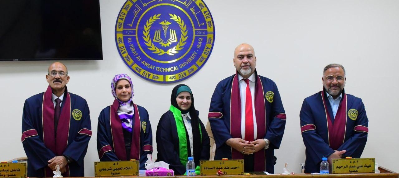 رسالة ماجستير في الكلية التقنية المسيب تبحث علاقة... شهدت الكلية التقنية المسيب إحدى تشكيلات جامعة الفرات الأوسط التقنية مناقشة رسالة ماجستير للباحثة أية حسين من قسم تقنيات الإنتاج الحيواني، والموسومة" علاقة التشك...