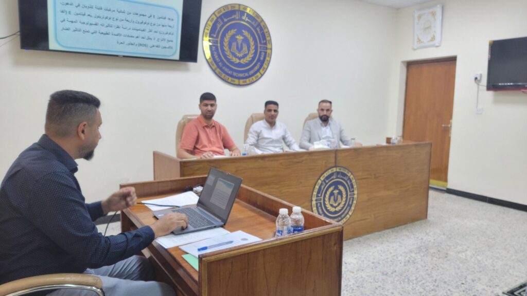 نظم قسم تقنيات الإنتاج الحيواني في الكلية التقنية المسيب حلقة دراسية لطلبة الماجستير والدبلوم العالي، بحضور أساتذة القسم وطلبة الدراسات العليا، وذلك في إطار متابعة وتطوير المشاريع البحثية للطلبة وتوجيهها نحو حلول مبتكرة لمشكلات القطاع الزراعي والحيواني.
