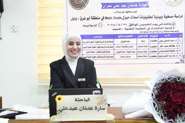 ناقشت الكلية التقنية المسيب إحدى تشكيلات جامعة الفرات الاوسط التقنية، رسالة ماجستير حول “دراسة مسحية وبيئية لطفيليات أسماك المبزل الرئيسي (حله/كفل) في منطقة أبي غرق / بابل”، للباحثة سارة عدنان عبدعلي من قسم تقنيات الانتاج الحيواني،والتي كشفت عن وجود تنوع كبير في الإصابات الطفيلية بين الأسماك، مع تحذير من تأثير التلوث وارتفاع درجات الحرارة في تفاقم المشكلة.