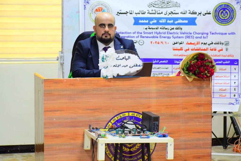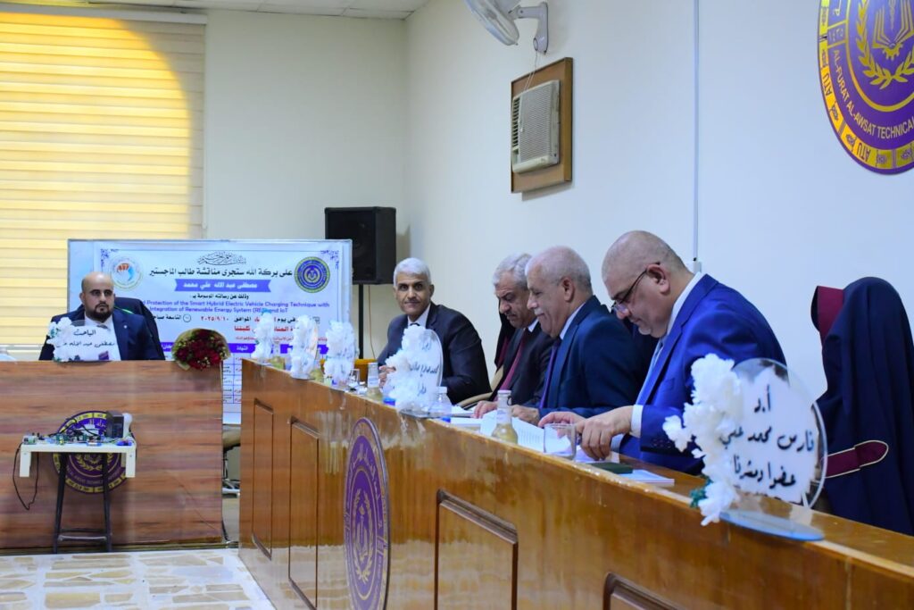نوقشت في الكلية التقنية المسيب إحدى تشكيلات جامعة الفرات الأوسط التقنية رسالة ماجستير للباحث مصطفى عبدالاله علي محمد علي من قسم تقنيات الهندسة الكهربائية والتي هدفت إلى تطوير نظام إدارة طاقة ذكي لتنظيم شحن وتفريغ البطارية وفق ظروف الشبكة وضمان حمايتها من التشغيل غير المرغوب، ورفع الكفاءة والموثوقية باستخدام الخلايا الشمسية.