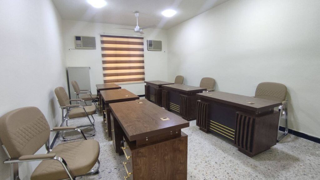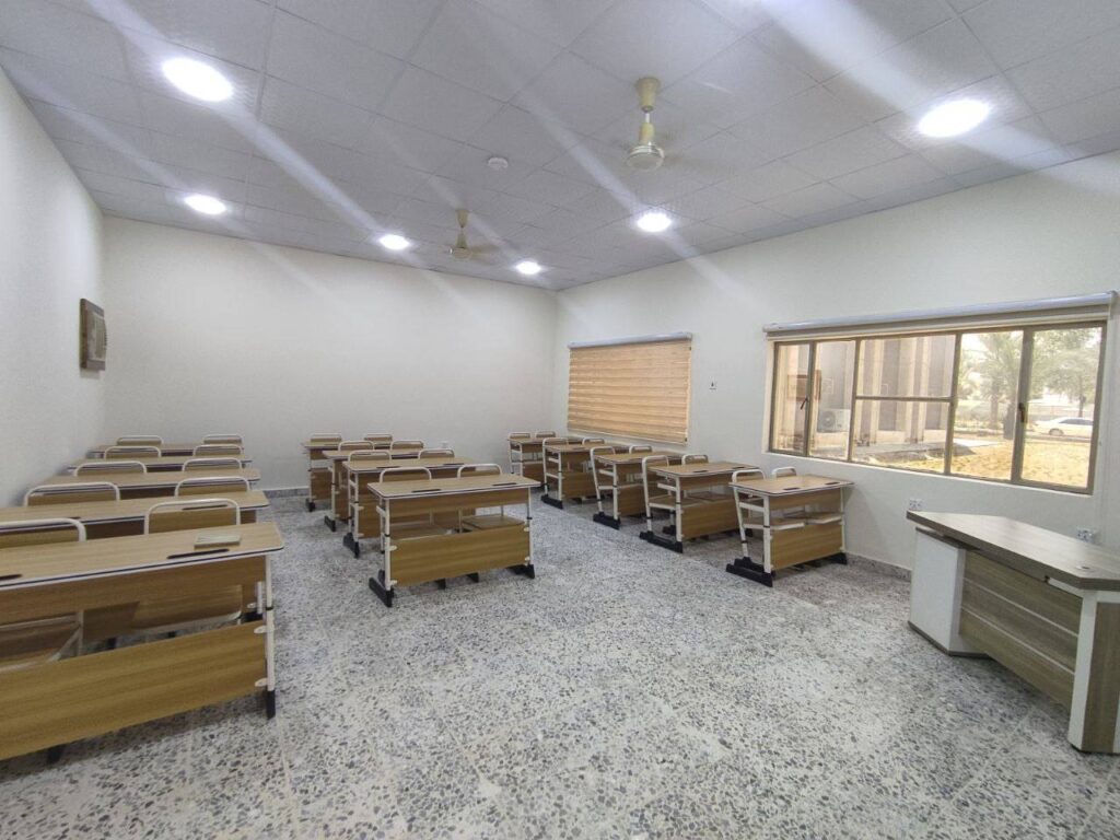 وأكد عميد الكلية الدكتور علي الزبيدي، أن جميع البنايات التي شملها الإعمار منذ عام 2012 قد تم تجهيزها بأحدث الأجهزة والأثاث المكتبي، لضمان توفير أجواء عمل ودراسة مريحة ومنتجة للهيئة التدريسية والطلبة على حد سواء.